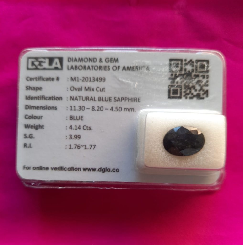 - Real NILAM stone (natural blue sapphire)
