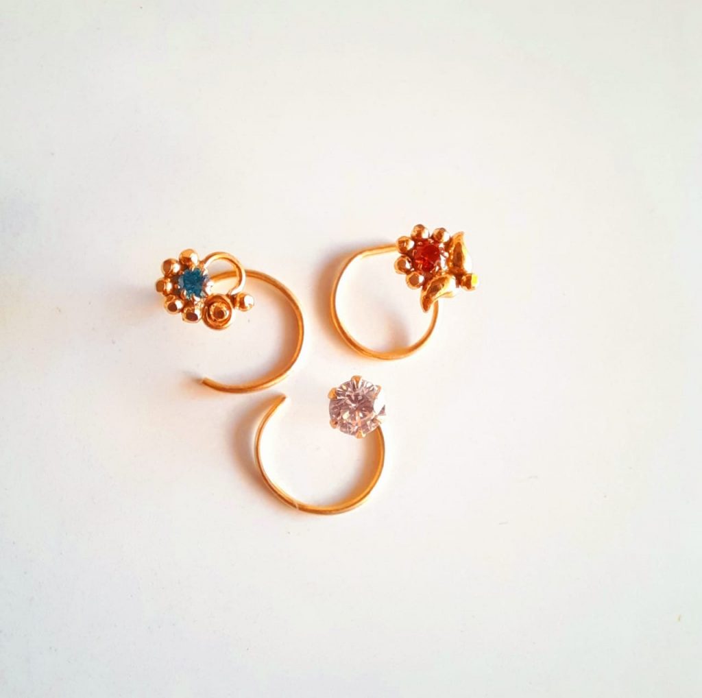 - Traditional 24krt GOLD plated Nosepin (MORNI) मोरनी (COMBO PACK 3PCS)