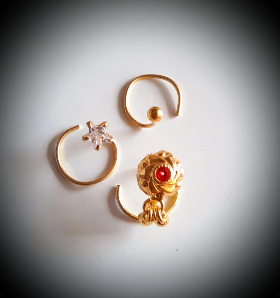 - Traditional 24krt GOLD plated Nosepin (MORNI) मोरनी (COMBO PACK 3PCS)