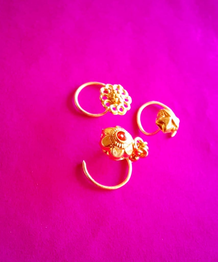 - Traditional 24krt GOLD plated Nosepin (MORNI) मोरनी (COMBO PACK 3PCS)