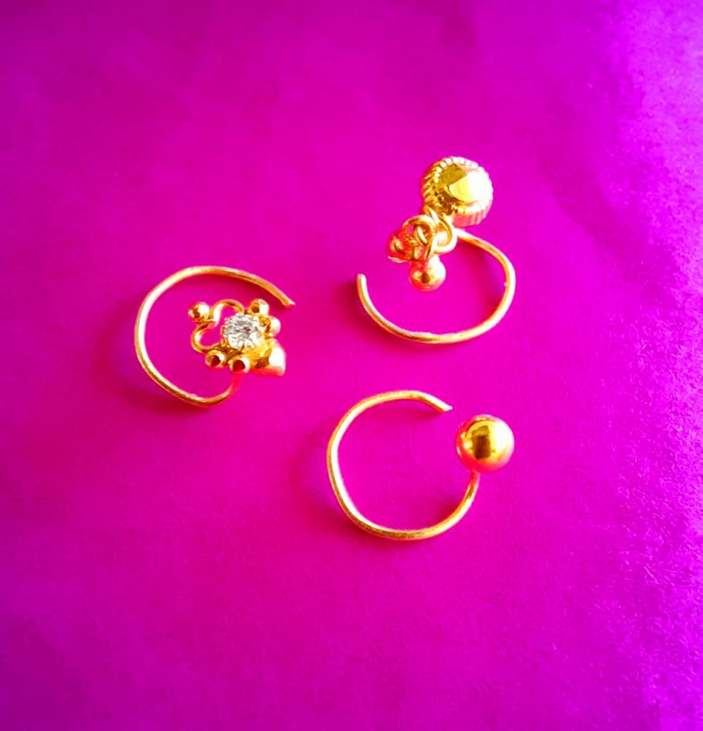 - Traditional 24krt GOLD plated Nosepin (MORNI) मोरनी (COMBO PACK 3PCS)
