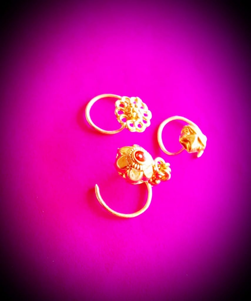 - Traditional 24krt GOLD plated Nosepin (MORNI) मोरनी (COMBO PACK 3PCS)