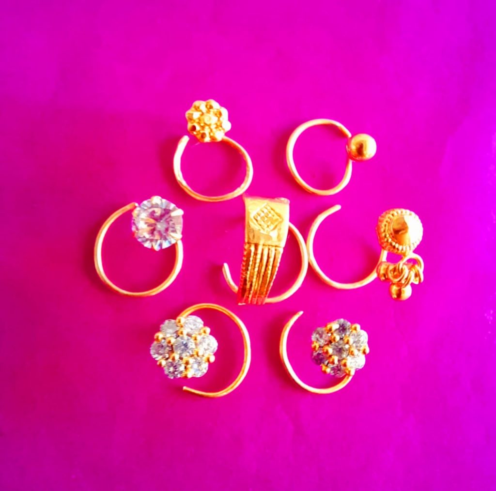 - Traditional 24krt GOLD plated Nosepin (MORNI) मोरनी (COMBO PACK 7PCS)