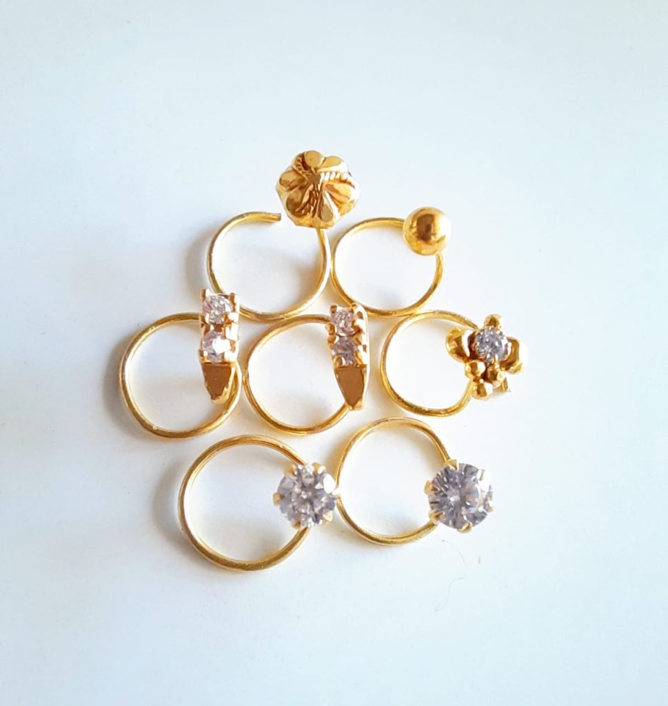 - Traditional 24krt GOLD plated Nosepin (MORNI) मोरनी (COMBO PACK 7PCS)