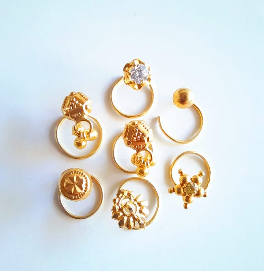 - Traditional 24krt GOLD plated Nosepin (MORNI) मोरनी (COMBO PACK 7PCS)