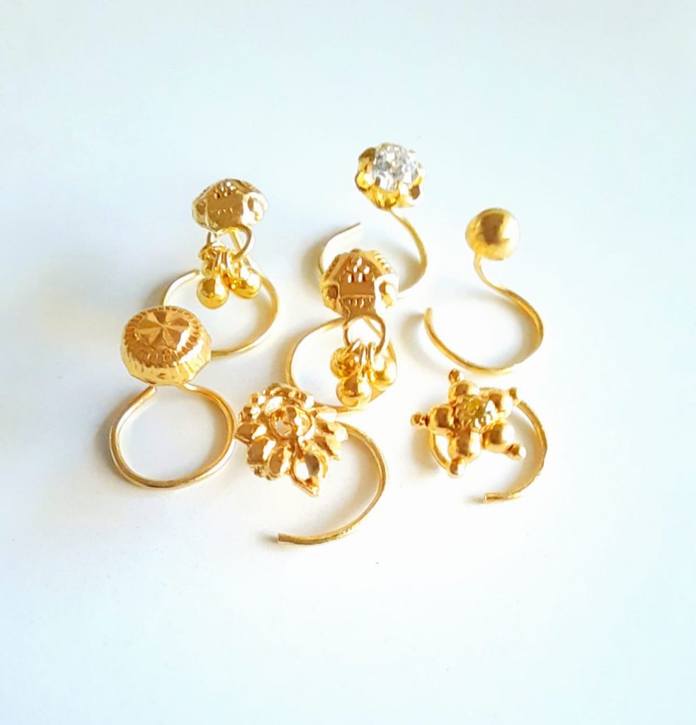 - Traditional 24krt GOLD plated Nosepin (MORNI) मोरनी (COMBO PACK 7PCS)