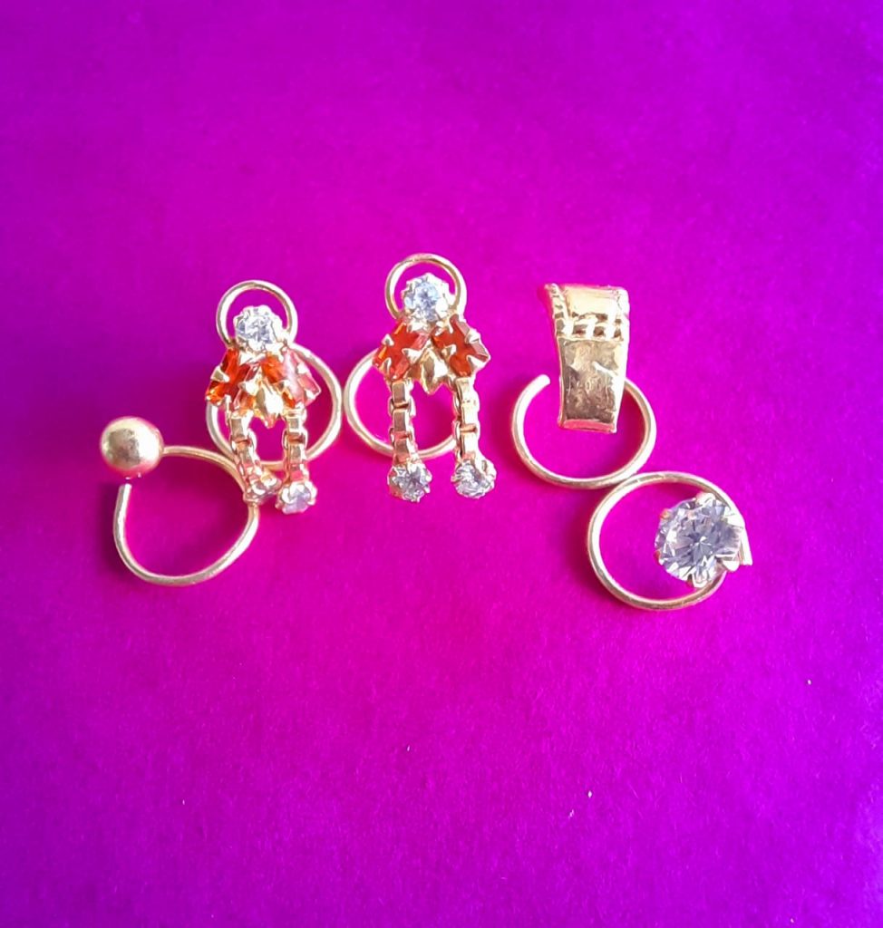 - Traditional 24krt GOLD plated Nosepin (MORNI) मोरनी (COMBO PACK 5PCS)