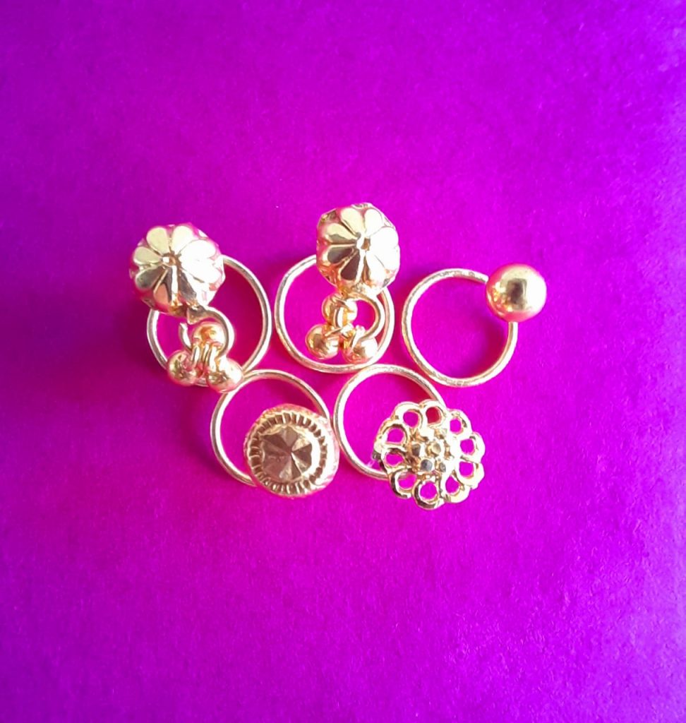 - Traditional 24krt GOLD plated Nosepin (MORNI) मोरनी (COMBO PACK 5PCS)