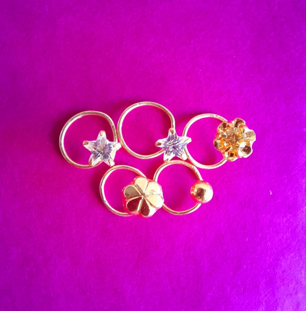 - Traditional 24krt GOLD plated Nosepin (MORNI) मोरनी (COMBO PACK 5PCS)