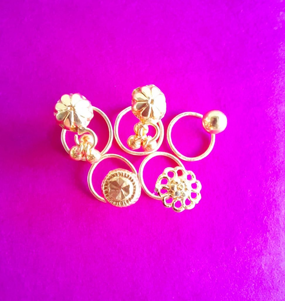 - Traditional 24krt GOLD plated Nosepin (MORNI) मोरनी (COMBO PACK 5PCS)