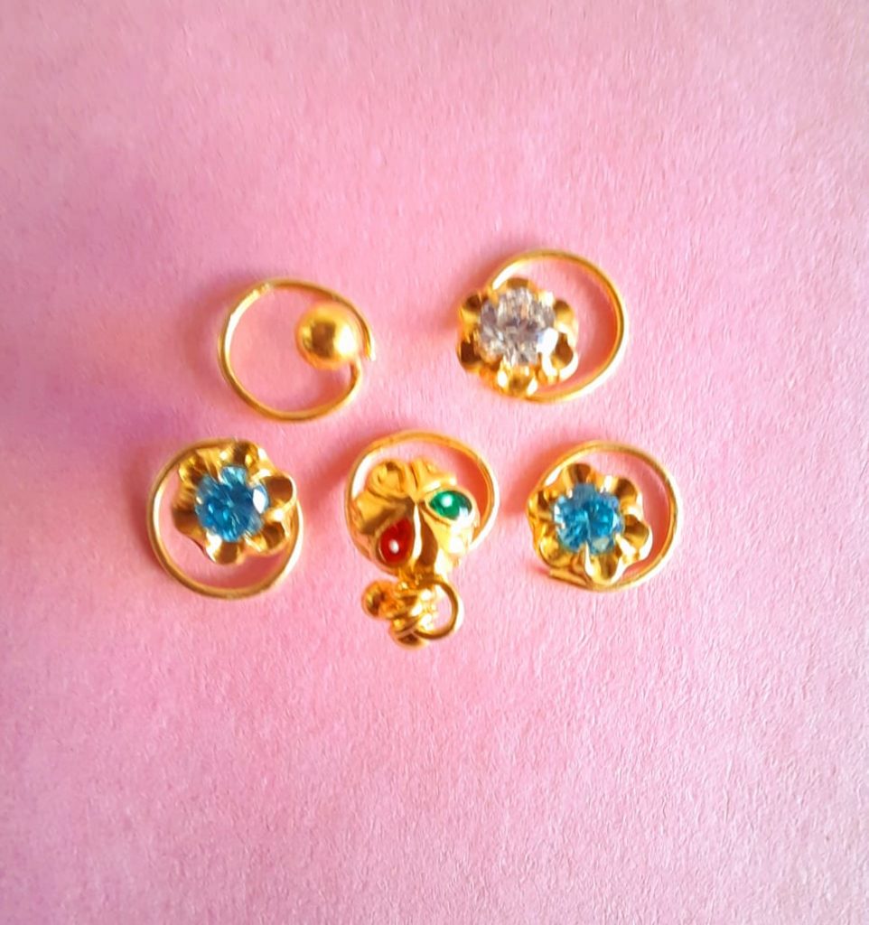 - Traditional 24krt GOLD plated Nosepin (MORNI) मोरनी (COMBO PACK 5PCS)
