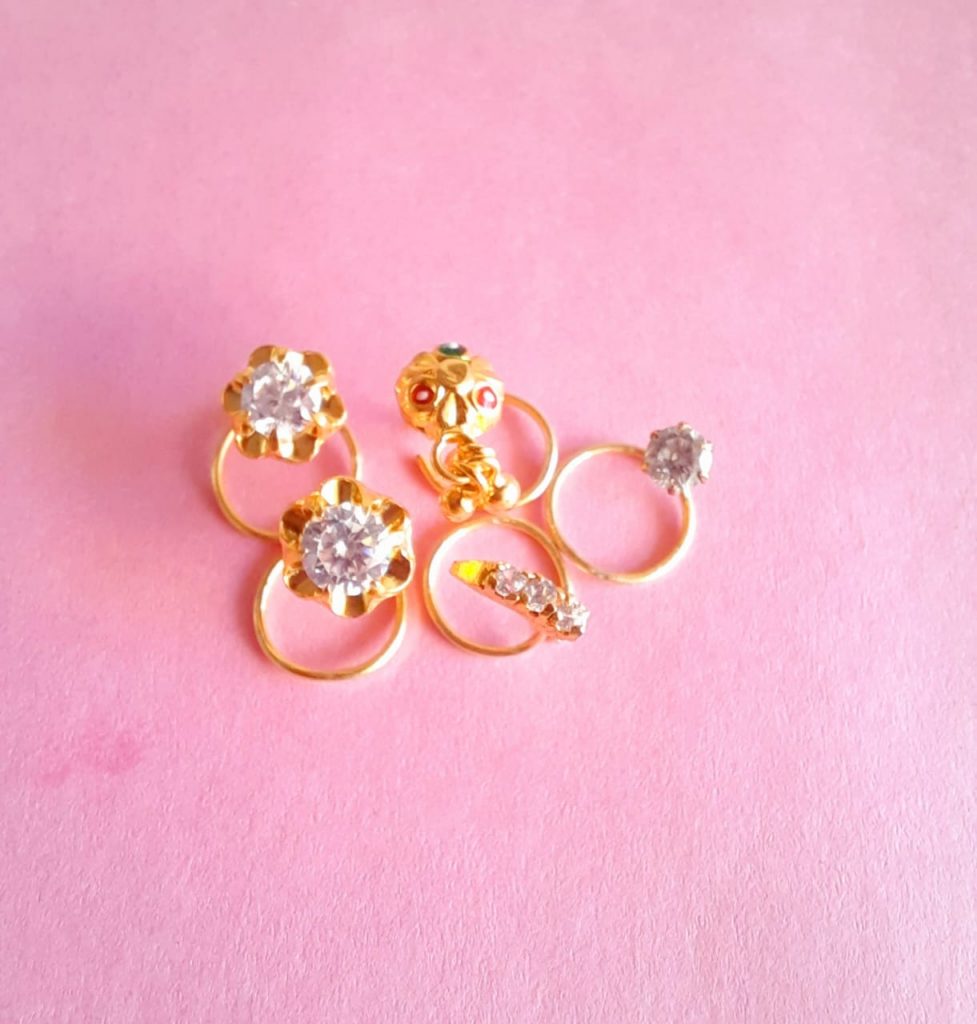 - Traditional 24krt GOLD plated Nosepin (MORNI) मोरनी (COMBO PACK 5PCS)
