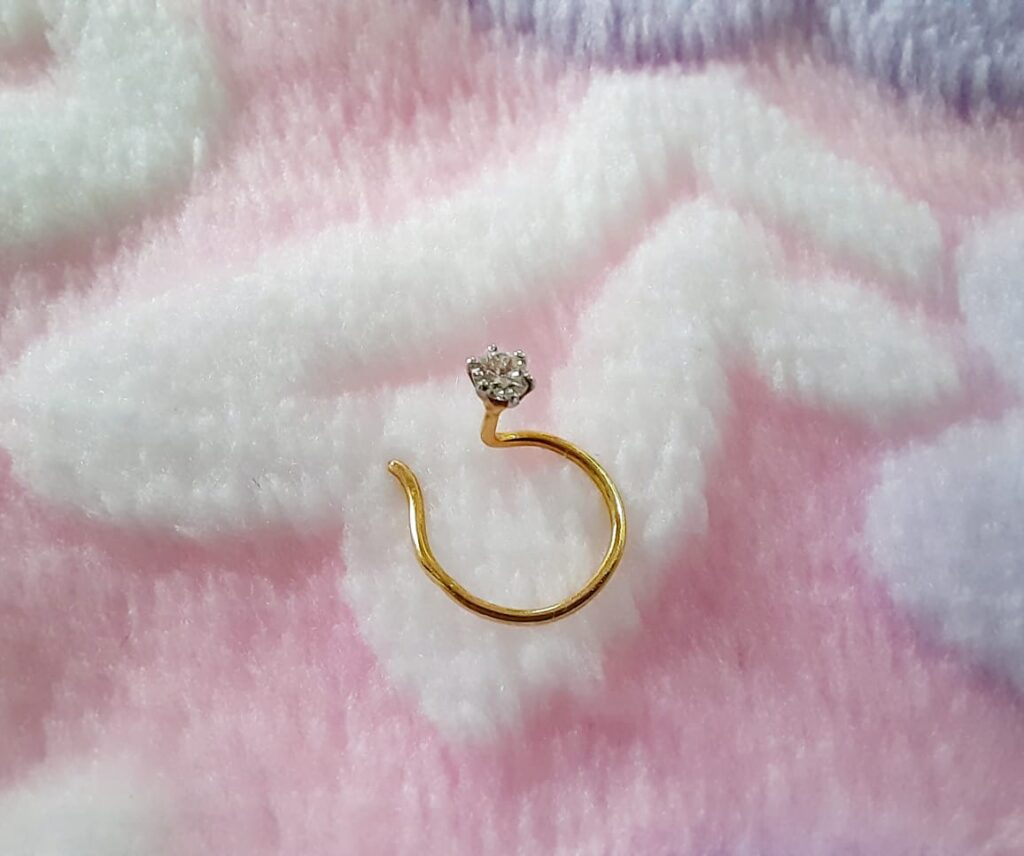 - Beautiful Nose Pin (morani) is crafted in Real Diamond & 14KT Gold.