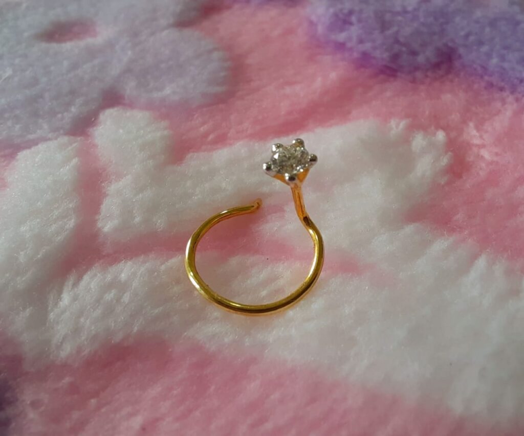 - Beautiful Nose Pin (morani) is crafted in Real Diamond & 14KT Gold.